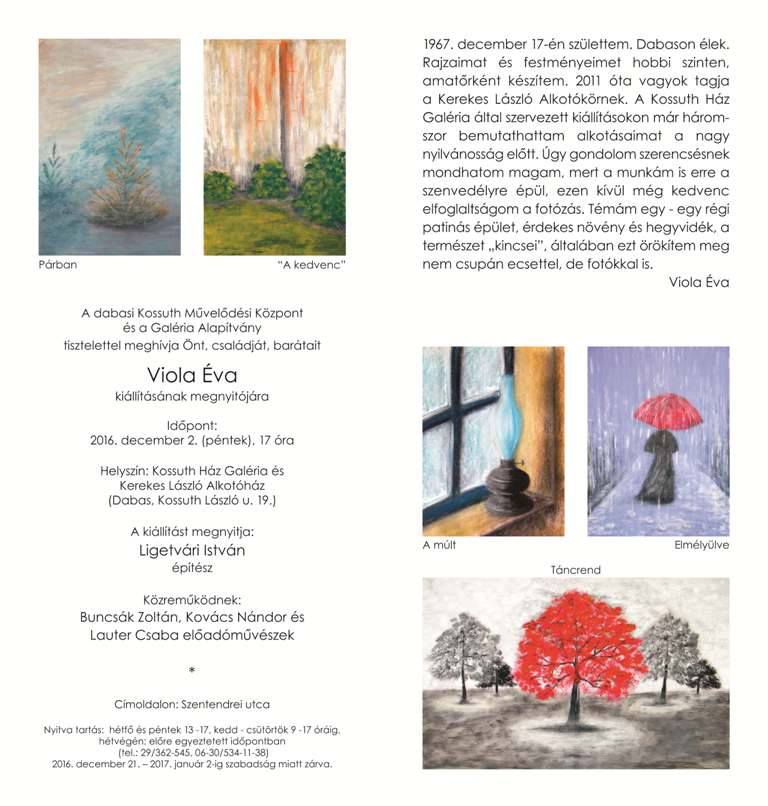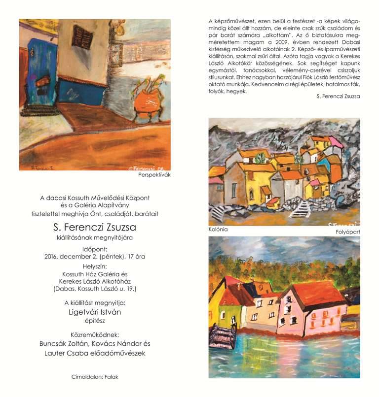 15nov.2016 S. Ferenczi Zsuzsanna és Viola Éva műkedvelő alkotók kiállítása Decemberi kiállításunk a Kossuth Ház Galériában: